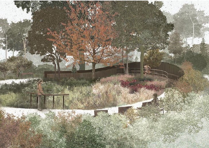 Ogród Z Pamięci to projekt naukowo-badawczy, którego celem było opracowanie kompleksowegoi modelowego rozwiązania przestrzennego, osadzonego w miejskiej przestrzeni publicznej, które zapewni odpowiednie, stymulujące zmysłowo i poznawczo środowisko dla grupy osób dotkniętych demencją i chorobą Alzheimera. Jego celem jest poprawa dostępności, zapewnienie poczucia bezpieczeństwa, stymulacjaemocjonalna, sensoryczna i wspomaganie procesów poznawczych użytkowników. Opiera się na zasadach designu prospołecznego, włączającego i empatycznego. Jest to również projektowanie dla emocji i doświadczeń, rozwoju poznawczego i sensorycznego u osób starszych. Dzięki współpracy z Zarządem Zieleni Miejskiej w Krakowie wyznaczono teren projektu.